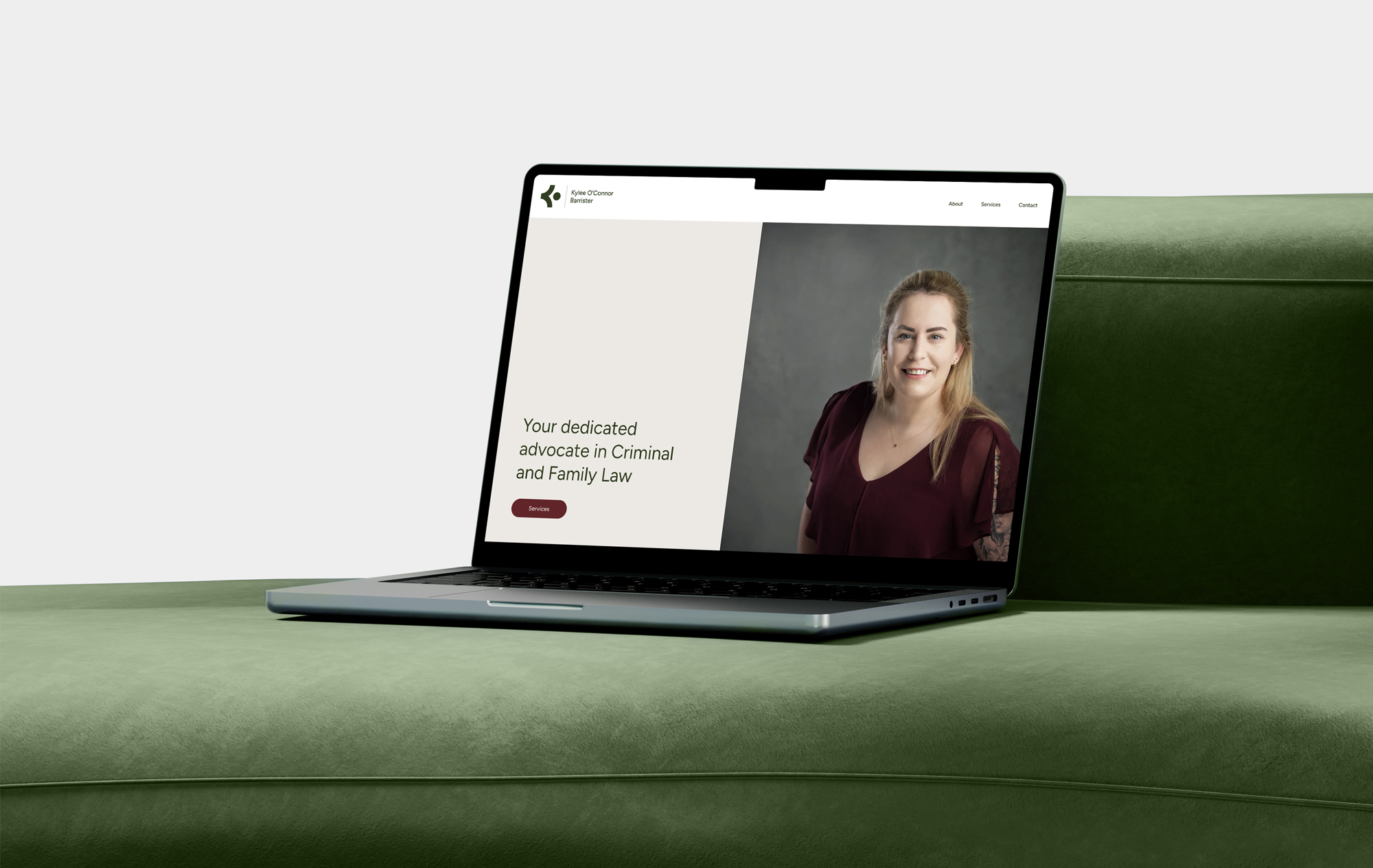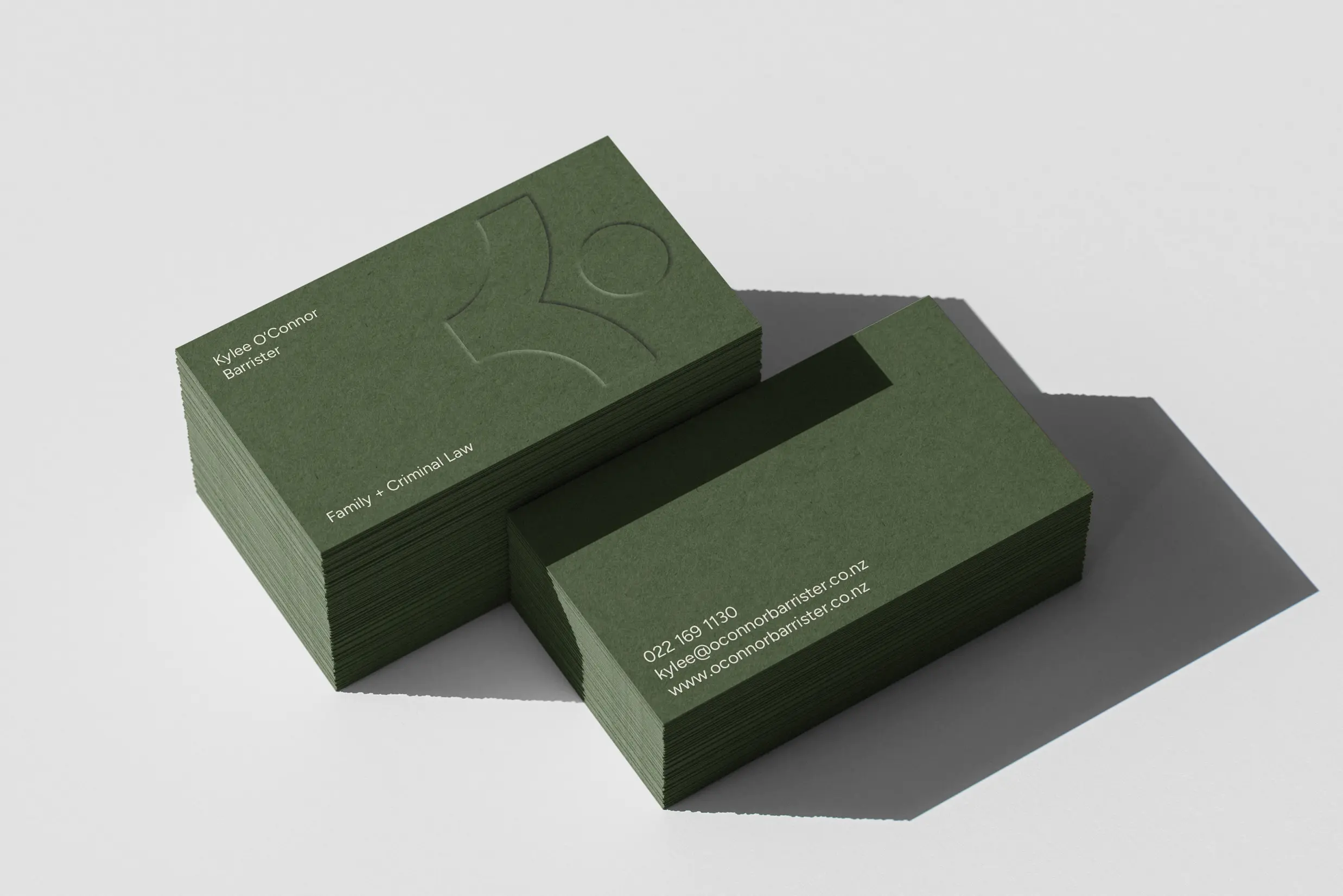 The brand identity for Kylee O’Connor Barrister centres on approachability, professionalism, and human-focused legal care. A clean, medium-weight sans-serif logotype strikes the balance between confidence and clarity, creating a modern and accessible presence. The deep olive green palette reinforces this tone, symbolising growth, balance, and the empathetic nature of Kylee’s work.